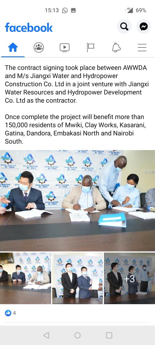 2021年3月19日當(dāng)?shù)貢r間上午八時,肯尼亞分公司與肯尼亞阿西水務(wù)開發(fā)局在阿西水務(wù)大廈簽訂了Mwiki污水管道項目施工合同??夏醽喒究偣こ處焺⑷鹆执矸止九c阿西水務(wù)局首席執(zhí)行官麥克共同出席簽約儀式并簽定施工合同。