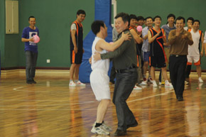 座談會結(jié)束后,大家乘車前往恒大體育館,活動的第一項(xiàng)內(nèi)容是公司領(lǐng)導(dǎo)和青年員工共同完成的團(tuán)隊(duì)拓展游戲——“齊腳并進(jìn)”和“心心相印”兩項(xiàng)接力比賽。比賽過程中,公司領(lǐng)導(dǎo)和青年員工們熱情高漲,目標(biāo)明確,心往一處想,勁往一處使,充分發(fā)揮團(tuán)隊(duì)協(xié)作精神,爭分奪秒完成各項(xiàng)任務(wù),布滿汗水的笑臉在燈光下熠熠生輝,加油鼓勁和歡呼祝賀聲響成一片。拓展游戲項(xiàng)目結(jié)束,大家還進(jìn)行了籃球友誼賽和羽毛球比賽。