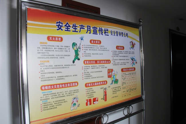 按照2013年“安全生產(chǎn)月”活動實施方案要求,公司所屬各單位張貼、懸掛安全生產(chǎn)警示語,突出宣傳“強化安全基礎(chǔ),推動安全發(fā)展”的活動主題。