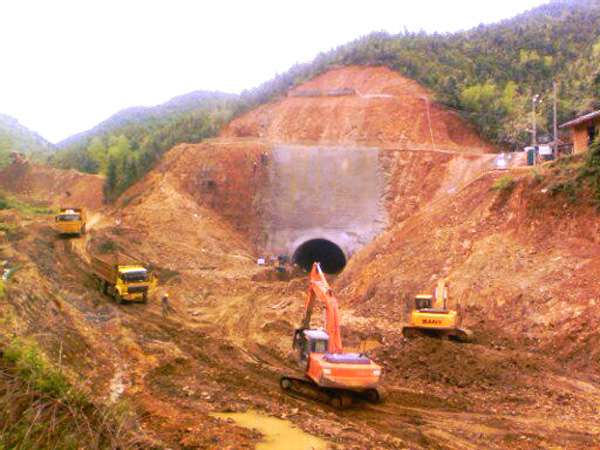 高倚四級(jí)水電站位于遂川江北支江高倚段,壩址座落在江西省遂川縣大坑鄉(xiāng),是贛江水系一級(jí)支流遂川江北支流梯級(jí)開發(fā)電站群中的一座。該水電站是一座以水力發(fā)電為主的低壩引水式小型水電站工程,安裝3臺(tái)軸流定槳立式水輪發(fā)電機(jī)組,總裝機(jī)容量7500千瓦,多年平均發(fā)電量2466萬千瓦時(shí)。水庫正常蓄水位134.5米,總庫容224.3萬立方米,主要由擋水壩建筑物、引水建筑物、廠房建筑物、防護(hù)工程及并網(wǎng)輸電線路五部分組成,為?。á瘢┬退娬竟こ?,工程等別為Ⅳ等。大壩壩軸線總長269米,引水隧洞總長1414.9米,隧洞為無壓城門形斷面,開挖斷面達(dá)60平方米(屬超大型斷面),引水隧洞進(jìn)口支洞長度42米。
