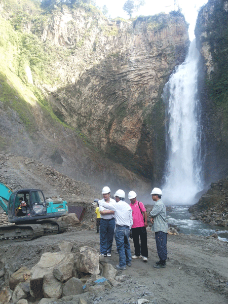 9月20日上午8時(shí),王總一行抵達(dá)印尼棉蘭國際機(jī)場,隨即轉(zhuǎn)機(jī)前往PAKKAT水電站項(xiàng)目所在地。在項(xiàng)目經(jīng)理孫小軍等的陪同下,王總不辭辛苦深入到大壩施工區(qū),認(rèn)真察看了大壩、發(fā)電隧洞等施工現(xiàn)場,他與現(xiàn)場施工人員一一握手并表示節(jié)日的慰問。王總察看施工現(xiàn)場并聽取匯報(bào)后,對大壩的建設(shè)情況以及工程外觀形象控制表示滿意,并結(jié)合自己的經(jīng)驗(yàn)對豎井的施工提出了建設(shè)性建議,重點(diǎn)強(qiáng)調(diào)了豎井施工安全生產(chǎn)的重要性。