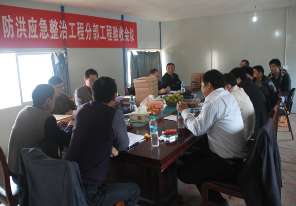 2014年11月20日上午9點,萍鄉(xiāng)市城市防洪應(yīng)急整治工程第一次5個分部工程驗收會議在項目部2樓會議室舉行。經(jīng)過現(xiàn)場察看、資料核查,該項目明河段和箱涵段的5個分部工程實體質(zhì)量和內(nèi)業(yè)資料得到各方的一致好評,順利按新規(guī)范的評定要求通過了驗收工作。