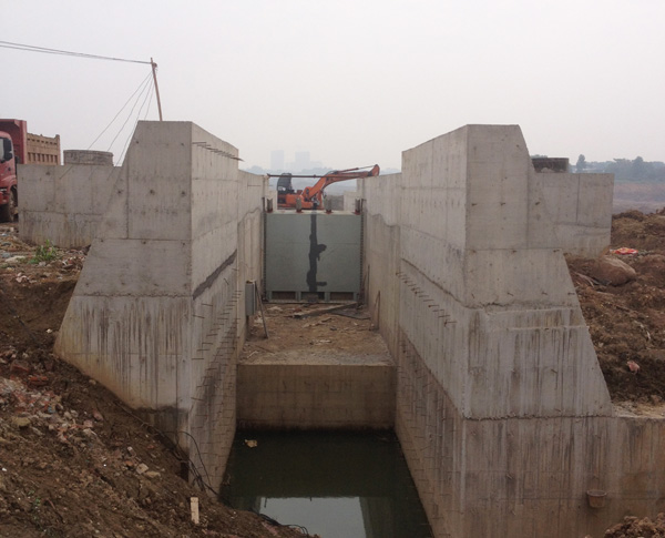 箱涵段全長720米,高8.65米,寬18米,分3孔,每孔凈高7.1米,凈寬5米,共60節(jié),是公司成立以來完成施工的最大結(jié)構(gòu)尺寸箱涵。按照傳統(tǒng)施工方法,每月僅能完成2~3倉砼澆筑,易受天氣影響,是該工程如期完成的關(guān)鍵節(jié)點,工期壓力極大。項目部集思廣益,開拓創(chuàng)新,首次在國內(nèi)項目范圍使用了鋼模臺車,每月可完成6倉砼澆筑。自2013年9月3日開始,經(jīng)過項目部全體施工人員的共同努力,至2014年11月23日下午完成箱涵砼工程全部砼澆筑,歷時446天,共計完成混凝土澆筑41000立方米,鋼筋制安2600噸,為公司類似項目施工積累了經(jīng)驗。