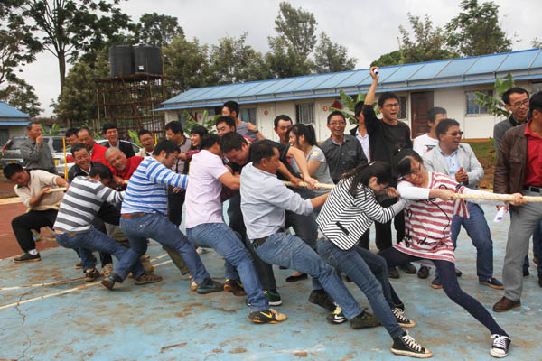 為了凝聚精神,交流感情,2014年12月25日,肯尼亞分公司第一屆迎新聯(lián)誼會(huì)在雙河正式舉辦。本次聯(lián)誼會(huì)共設(shè)拔河、籃球、CS三項(xiàng)團(tuán)體比賽項(xiàng)目,乒乓球、象棋、升級(jí)三項(xiàng)個(gè)人比賽項(xiàng)目及趣味套圈項(xiàng)目,肯尼亞辦事處及各在建項(xiàng)目均組隊(duì)參加了比賽。