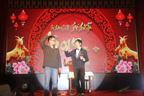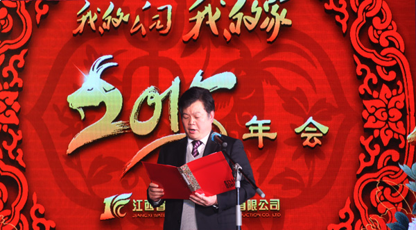 年會在喜慶的氛圍下拉開序幕,公司董事長王元旦發(fā)表了熱情洋溢的新年賀詞,并代表公司董事會向全體員工及家屬,向關(guān)心公司發(fā)展的社會各界朋友致以新春的祝福?;仡?014年,王董事長指出,在公司董事會的正確領(lǐng)導下,全體員工上下團結(jié)一心,攻堅克難,發(fā)奮有為,頑強拼搏,扎實工作,各項工作取得了令人鼓舞的成績,公司朝著質(zhì)量好、品牌優(yōu)、信譽高、市場廣的集團型企業(yè)方向邁進。展望2015年,王董事長表示,公司將繼續(xù)圍繞“一個系統(tǒng),五大平臺”建設(shè)為工作重心,不斷改革創(chuàng)新,開拓進取,以更加強烈的責任擔當、更加務(wù)實的工作作風、更加飽滿的工作熱情,團結(jié)一心,同心同德,在實現(xiàn)公司夢的征程上闊步前行!王董事長熱情洋溢的講話,獲得了現(xiàn)場的陣陣掌聲。