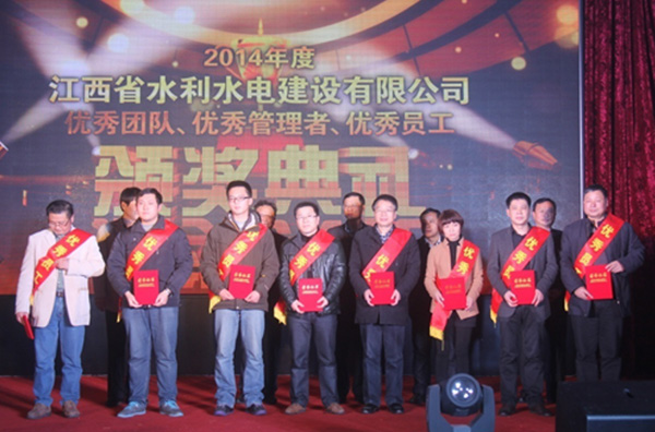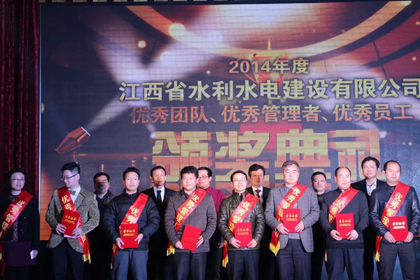 隨后,公司總經(jīng)理徐洪良宣讀了2014年優(yōu)秀表彰決定,并與公司領(lǐng)導班子一起,為雙河二期項目部等6個優(yōu)秀團隊、肖凱等10位優(yōu)秀管理者和周家煌等23位優(yōu)秀員工進行頒獎。徐總要求,希望受到表彰的先進集體和個人積極進取、再接再厲,以更加昂揚的斗志投入到今后的工作中,創(chuàng)造出更加輝煌的成績;希望各單位和廣大員工以優(yōu)秀團隊和先進個人為榜樣,加強學習,開拓創(chuàng)新,銳意進取,為江西水建燦爛的明天而努力工作!