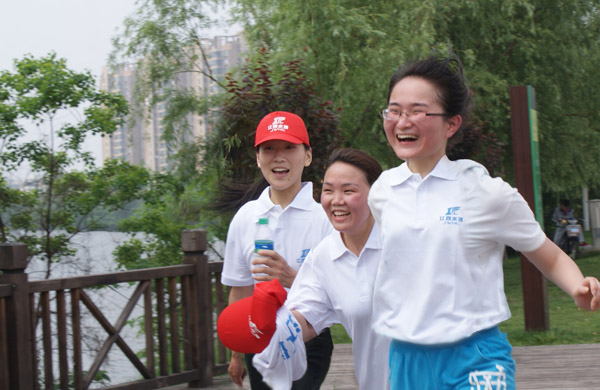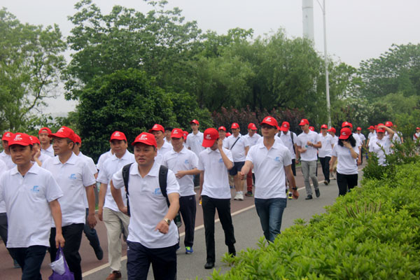 活動開始前,公司工會主席史偉作了簡短的動員講話,上午8:30健步走活動正式啟動。在工作人員的引導下,員工們邁著矯健的步伐大踏步的行走在美麗的艾溪湖湖畔。活動中,大家精神抖擻、意氣風發(fā),你追我趕、揮汗如雨,最后全部順利抵達終點,全程共計11公里。