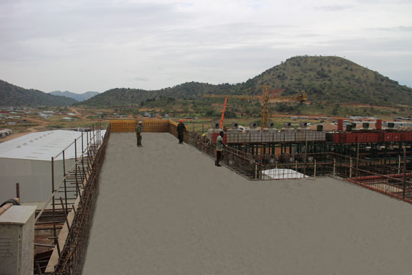 該項(xiàng)目位于接近赤道的埃塞俄比亞南部,素以氣候炎熱而著稱,施工條件頗為艱苦。施工過程中,項(xiàng)目部成員每天早出晚歸,常常一站就是一天,二十四小時(shí)連班也是家常便飯。在主廠房接近封頂?shù)年P(guān)鍵時(shí)刻,項(xiàng)目部全體員工有的夜里跟隨混凝土罐車執(zhí)行押車任務(wù),有的深夜依然堅(jiān)持在澆搗一線指揮作業(yè),連續(xù)奮戰(zhàn)數(shù)日,終于完成封頂大任。