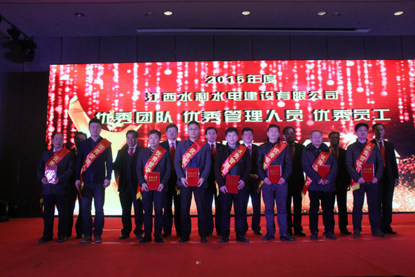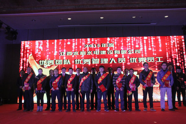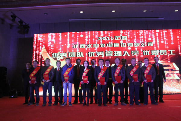 隨后,公司董事長王元旦、總經(jīng)理徐洪良和相關領導向海外公司等10個優(yōu)秀團隊、郭洪有等22位優(yōu)秀管理者和周家煌等30位優(yōu)秀員工進行頒獎,感謝他們在過去的2015年為江西水建發(fā)展所作出的貢獻。