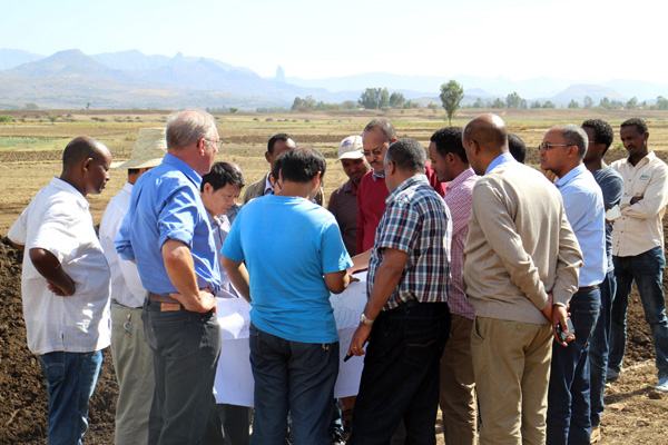 2016年3月20日,埃塞俄比亞聯(lián)邦水利能源部部長Motuma Mekesa閣下及副部長Kebede Gerba閣下帶領(lǐng)水利能源部尼羅河灌溉項目協(xié)調(diào)辦、阿姆哈拉州土地管理局、阿姆哈拉州尼羅河灌溉項目協(xié)調(diào)辦等項目各參建單位負(fù)責(zé)人到我公司承建的埃塞俄比亞Ribb一期灌溉項目視察。