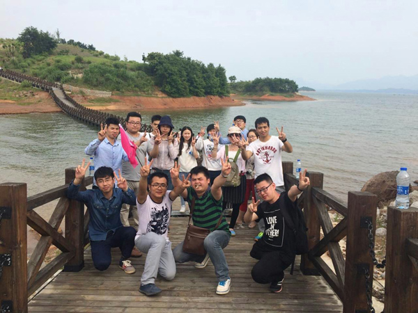 5月17日,大家在南昌統(tǒng)一集合,乘車出發(fā)前往廬山西海景區(qū),一路歡聲笑語,抵達景區(qū)后,全體人員立刻進入整隊分組環(huán)節(jié),推薦隊長、政委和旗手,選好隊歌,設計隊名、口號和LOGO。很快“王者隊”、“疾風隊” 等名字紛紛閃亮登場?!敖魉?,王者歸來”、“斧頭斧頭,兇如猛虎”等口號一次又一次迎來全場的陣陣歡呼。隨后進行了“一圈到底、鼓舞飛揚、能量傳遞、激情節(jié)拍、勇攀高峰、定向尋寶”6個比賽項目,大家一個個摩拳擦掌,爭當?shù)谝幻?,現(xiàn)場一派朝氣蓬勃、青春洋溢的氛圍。