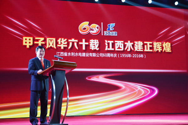 在公司成立六十周年慶典大會上的講話 董事長 王元旦 (2016年12月17日) 尊敬的領(lǐng)導(dǎo)、老前輩,各位來賓、同志們、朋友們: 大家下午好! 六十年風(fēng)雨征程光陰荏苒;一甲子滄桑巨變歲月如歌。今天,我們相聚在這里,共同慶祝江西水建成立60周年,一起回顧公司60年的艱苦創(chuàng)業(yè),齊心展望公司的美好前景。借此機(jī)會,我謹(jǐn)代表公司海內(nèi)外全體員工,向蒞臨大會的各級領(lǐng)導(dǎo)、各位來賓表示最熱烈的歡迎和衷心的感謝!向長期以來關(guān)心和支持公司成長和發(fā)展的新老領(lǐng)導(dǎo)、有關(guān)單位和部門、合作伙伴以及社會各界朋友表示最誠摯的謝意!向曾經(jīng)為公司發(fā)展做出貢獻(xiàn)的歷任老領(lǐng)導(dǎo)、老同志、以及在他們身后默默奉獻(xiàn)的家屬,致以最崇高的敬意!向此時此刻依然奮戰(zhàn)在中華大地和異國他鄉(xiāng)的廣大員工,致以最親切的慰問和最美好的祝愿! 60年前,江西省水利水電建設(shè)有限公司的前身――江西省廬山水力發(fā)電工程處,在南昌市南郊的向塘鎮(zhèn)破繭而出,這是紅土地上誕生的第一支專業(yè)的水電建設(shè)隊伍,這也是一支特別能吃苦,特別能戰(zhàn)斗,特別能奉獻(xiàn)的光榮隊伍。來自五湖四海的江西水建的前輩們,在建設(shè)新中國的紅旗獵獵、戰(zhàn)鼓聲聲中,伴隨著嘹亮的戰(zhàn)歌,開始了艱苦創(chuàng)業(yè)的偉大征程。他們跋涉于崇山峻嶺,攀巖于懸崖峭壁,饑食野果,渴飲山泉,櫛風(fēng)沐雨、克難奮進(jìn);他們身居陋室,昏暗燈光下描繪著建設(shè)新中國的藍(lán)圖;粗茶淡飯里,憧憬著實(shí)現(xiàn)共產(chǎn)主義的遠(yuǎn)大理想。寂寞繁星下,深山峽谷中,空曠原野上,他們忍受著蚊蟲叮咬,承受著思鄉(xiāng)煎熬,用手拉肩扛的艱辛,用汗水成鹽的付出,用青春與熱血的奉獻(xiàn),把自己融入了共和國建設(shè)的宏偉事業(yè)之中,用山的風(fēng)骨、水的柔情,在祖國的山川大地譜寫著江西水建的故事和傳奇。 隨著新中國建設(shè)事業(yè)的發(fā)展,江西水建的名稱幾經(jīng)變遷:1961年廬山水力發(fā)電工程處擴(kuò)編成為江西省水利水電工程總隊,承擔(dān)起全省水利水電施工的重任;1971年變更為江西省水電工程團(tuán),成為江西省綜合性大型水利水電施工企業(yè);1975更名為江西省水利水電工程局,分設(shè)了羅灣水電工程指揮部;1980年水利水電系統(tǒng)分家,羅灣水電工程指揮部更名為江西省水利建設(shè)公司,隸屬于江西省水利廳,江西省水利水電工程局歸屬于江西省電力工業(yè)局;1993年,江西省水利建設(shè)公司更名為江西省水利水電建設(shè)總公司;2007年經(jīng)改制成為如今的江西省水利水電建設(shè)有限公司。 60年的歷史可以濃縮成簡單的名稱改變,道不盡的是名稱變遷背后飽含的歲月滄桑。 此時此刻,在舉司歡慶六十周年的喜慶時刻,讓我們靜心重溫那熟悉、但漸行漸遠(yuǎn)的名字:廬山水力發(fā)電廠、撫州洪門水電站、新余江口水電站、永修柘林水電站、靖安羅灣水電站、遂川草林沖水電站、宜黃觀音山水電站、吉安白云山水電站、永新龍源口水電站、遂川安村水電站、上饒下會坑超薄型砌石雙曲拱壩……這一個個普通的工程名稱,呼喚著老一輩江西水建人的青春記憶,它們就是一座座鐫刻在山河大地的巍峨豐碑,無言述說著老一輩江西水建人曾經(jīng)的青蔥歲月、燃燒激情,記錄著老一輩江西水建人硝煙散盡的偉大與平凡,傳頌著他們奮斗的歷史和不朽的榮耀! 此時此刻,在舉司歡慶六十周年的喜慶時刻,我提議:讓我們用最熱烈的掌聲,向?yàn)榻魉òl(fā)展建功立業(yè),默默無聞地奉獻(xiàn)了一生的老領(lǐng)導(dǎo)、老干部、老職工表示最真誠的感謝;向?yàn)榻鞯乃聵I(yè)付出了汗水和熱血,奉獻(xiàn)了青春的老一輩江西水建人表示最崇高的敬意! 60年薪火相傳,60年風(fēng)雨滄桑。一代代江西水建人承前啟后,接力奮斗,緊跟時代的前進(jìn)步伐,實(shí)現(xiàn)了從生產(chǎn)方式極為落后的人力作業(yè)為主到全面機(jī)械化施工的跨越;走過了從承接指令性工程到全面進(jìn)入市場競爭的艱苦歷程;度過了“無米下鍋”人心渙散的困難局面,實(shí)現(xiàn)了省內(nèi)外、海內(nèi)外多元化全面發(fā)展的華麗變革。 歷史會銘記難忘的2007年。這一年,江西水建人積極響應(yīng)省政府的號召,省水利廳的英明決策,以壯士斷腕的勇氣,一舉完成了脫胎換骨般的國有體制改革,實(shí)現(xiàn)了向民營企業(yè)的艱難轉(zhuǎn)變。擺脫歷史負(fù)荷與束縛的江西水建,揚(yáng)帆啟航,開始了鳳凰涅槃般的浴火重生。 “立足省內(nèi),拓展省外,堅定不移地實(shí)施大海外戰(zhàn)略”,在既定的經(jīng)營戰(zhàn)略指引下,脫繭重生的江西水建,在新一輪水利建設(shè)高潮中,承接了大部分的省內(nèi)大中型水庫除險加固與大型泵站更新改造工程,鄱陽湖第五、第六單項(xiàng)的堤防達(dá)標(biāo)與除險加固工程,贛撫大堤加固配套工程,撫州廖坊灌渠工程,峽江水利樞紐工程…也按制訂的經(jīng)營計劃一一實(shí)現(xiàn)了經(jīng)營目標(biāo);鞏固省內(nèi)市場的同時,江西水建人謀篇布局,著眼全國,先后設(shè)立了二十多個省外分公司,省外市場經(jīng)營也實(shí)現(xiàn)了質(zhì)的飛躍:廣州東莞中央水系二期工程、新客站河