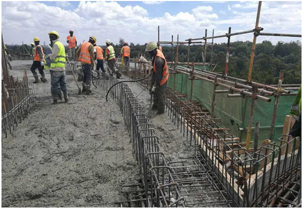 2017年02月20日,伴隨著最后一方混凝土的澆筑到位,在業(yè)主、監(jiān)理及項(xiàng)目部領(lǐng)導(dǎo)的見證下,由我公司承建的“肯尼亞維多利亞銀行辦公樓項(xiàng)目”成功完成封頂,項(xiàng)目主體工程圓滿完成。