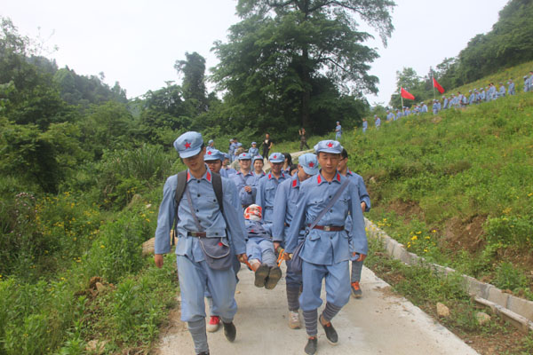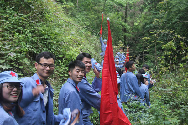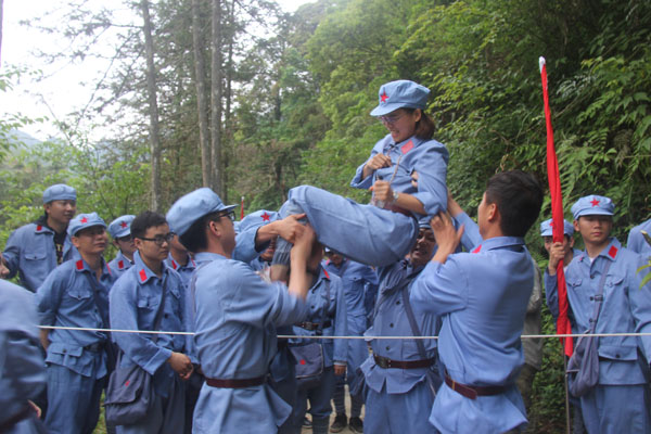 抵達(dá)井岡山后,全體人員立刻進(jìn)入三灣隊(duì)伍整編環(huán)節(jié),推薦隊(duì)長、政委和旗手,設(shè)計(jì)隊(duì)名、口號和LOGO。很快“飛龍隊(duì)”、“戰(zhàn)鷹隊(duì)” 等名字紛紛閃亮登場?!褒堈魅f里,所向披靡”、“ 群狼行千里,星火可燎原”等口號一次又一次迎來全場的陣陣歡呼。隨后進(jìn)行了“穿越叢林、突破封鎖線、匍匐前進(jìn)、火線救援”4個比賽項(xiàng)目,這些比賽項(xiàng)目,增強(qiáng)了大家的團(tuán)隊(duì)意識,每名成員充分認(rèn)識到了團(tuán)結(jié)協(xié)作、友愛互助的重要性,使大家在比賽中受到啟發(fā)、受到鼓舞、更使大家得到了鍛煉,經(jīng)受了考驗(yàn)。