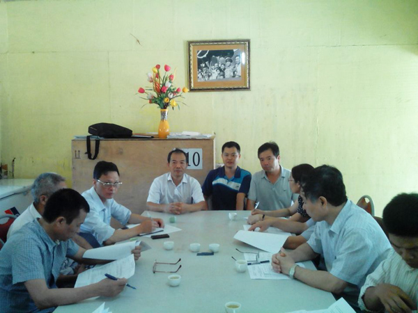 越南分公司負責人鄒春明、項目經(jīng)理夏愛民向阮玉平董事長介紹施工情況