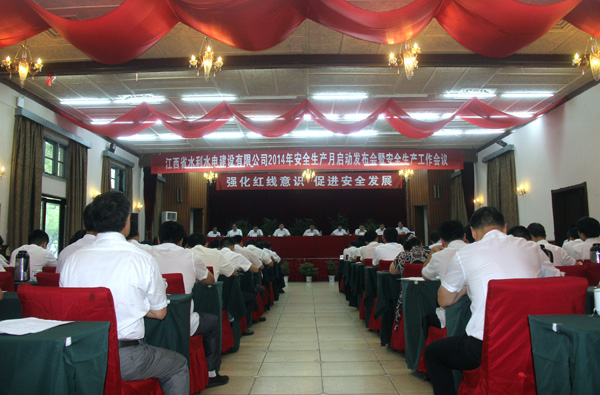 為響應江西省水利廳《關于開展2014年水利安全生產月宣傳活動》精神要求,牢固樹立“以人為本”的科學發(fā)展觀,2014年6月22日,公司在南昌召開了2014年安全生產月啟動發(fā)布會暨安全生產工作會議。省水利廳黨委書記、廳長孫曉山,副廳長廖瑞釗到會指導,公司黨委書記、董事長兼總經理王元旦等高層領導,公司中層管理人員,各專業(yè)公司、分公司及施工項目部的主要負責人、技術負責人、專職安全員共100余人參加了會議。公司黨委副書記王延軍主持會議并宣布安全生產月啟動。
