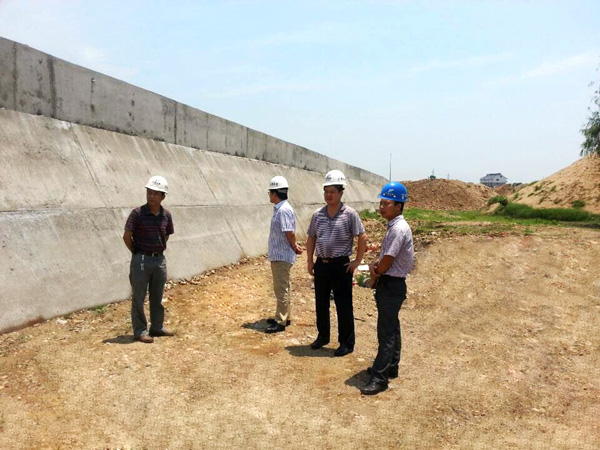 隨后,王總一行又馬不停蹄地趕往江西省五河治理防洪工程鉛山縣城西堤畜牧場至劉家洲段項目施工現(xiàn)場進行檢查指導工作。董事長兼總經理王元旦實地察看了施工現(xiàn)場,仔細了解了工程情況,對項目施工質量作出了肯定的評價。他要求項目部要強化安全意識,加快進度,確保工程質量,按計劃完成并驗收。王總還親切慰問了一線施工人員,提醒項目經理部要做好職工的降溫防暑工作。