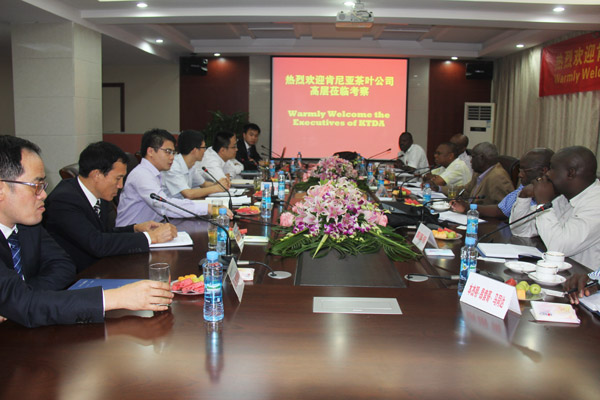 2014年9月上旬,肯尼亞茶葉發(fā)展有限公司董事Philip Kibirech NG’Etich先生一行七人應(yīng)邀來我公司參觀考察,旨在加深雙方了解和建立互惠共贏的合作??偨?jīng)理徐洪良代表公司對他們的到來表示熱烈歡迎,總會計師王義生、總工程師胡鴻煌及海外公司相關(guān)負(fù)責(zé)人參加了會見并陪同肯尼亞客人參觀了公司總部各部門。