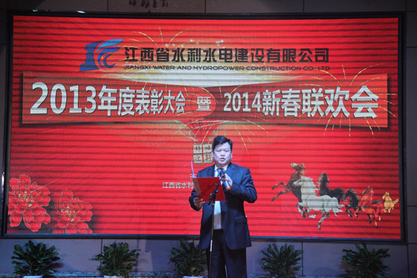 在隨后的新春聯(lián)歡會上,王總發(fā)表了熱情洋溢的新年賀詞,并代表公司董事會和領導班子,向全體員工、支持公司改革發(fā)展的離退休老同志和員工家屬,以及仍堅守在工作崗位的海內(nèi)外一線員工致以節(jié)日的祝福和誠摯的問候。王總在致詞中說,2013年是公司發(fā)展史上不平凡的一年,在公司董事會的正確領導下,全體員工以企業(yè)為家,團結(jié)一心、不畏艱難,腳踏實地、開拓創(chuàng)新,沿著年初制定的各項工作目標努力奮進。公司各項事業(yè)繼續(xù)保持蓬勃發(fā)展的良好形勢,朝著質(zhì)量好、品牌優(yōu)、市場廣的集團型企業(yè)方向邁進。2013年,公司開拓進取、勇于突破,準確定位、大膽決策,利用資本運作境內(nèi)外項目,以投融資帶動市場,在國內(nèi)嘗試承接BT項目,國外則跨行業(yè)進入投資領域,利用投資經(jīng)營提升企業(yè)競爭力。王總指出,公司在2013年取得了一系列優(yōu)秀的成績,兩項省級工法和兩項部級工法通過評審,內(nèi)部管理制度日益健全,爆破資質(zhì)、城市園林綠化資質(zhì)通過審核,在國際工程建設領域發(fā)展迅速,被譽為江西水利行業(yè)走向世界、開拓國際市場的排頭兵。