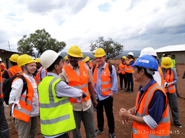 考察團(tuán)一行在項(xiàng)目組人員的陪同下,先后實(shí)地參觀了營(yíng)地建設(shè)情況,視察了工程施工現(xiàn)場(chǎng),認(rèn)真聽取了項(xiàng)目組負(fù)責(zé)人關(guān)于施工現(xiàn)場(chǎng)臨時(shí)工程建設(shè)情況、主體工程施工方案、工程進(jìn)度、ESHS執(zhí)行情況以及項(xiàng)目的自由通關(guān)、雇工招聘等工作情況匯報(bào),仔細(xì)詢問了施工人員勞動(dòng)保護(hù)措施,安全生產(chǎn)管理情況等,并對(duì)工程建設(shè)提出了指導(dǎo)意見??疾烊藛T對(duì)公司嚴(yán)格按行業(yè)合同要求,認(rèn)真履約,積極推進(jìn)施工進(jìn)度,給予了充分肯定。并希望公司能順利完成項(xiàng)目建設(shè),早日實(shí)現(xiàn)工程投產(chǎn)發(fā)電目標(biāo),助力當(dāng)?shù)亟?jīng)濟(jì)發(fā)展,造福非洲三國人民!