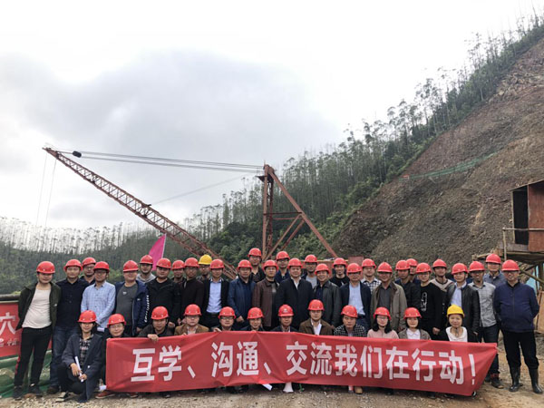在施工現(xiàn)場,董事長王元旦親自向學習團講述了水利樞紐工程施工質量控制要點和施工安全注意事項。他希望學員通過參觀學習項目工程建設,不斷提升業(yè)務水平,為公司發(fā)展壯大做出積極貢獻??偣こ處熀櫥图绊椖抗芾砣藛T和大家分享了定南洋前壩項目的施工經驗。