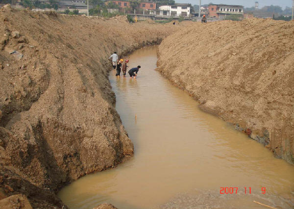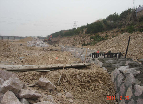 堤基清理:必須對堤內(nèi)、外坡腳線外1m范圍內(nèi)的亂石、墳?zāi)?、各種建筑物和垃圾、雜草、樹木、樹根、腐植土及淤泥全部清除,并棄至背水坡腳以外或指定場地,水井、泉眼、洞穴等按設(shè)計要求處理,并經(jīng)驗(yàn)收確認(rèn)合格為止。